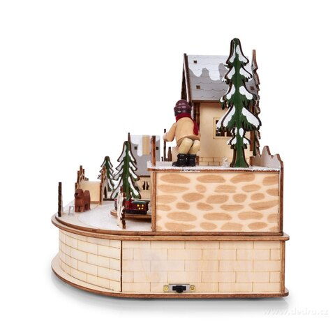 ZIMOWE MIASTECZKO Z JEŻDŻĄCYM POCIĄGIEM, oświetleniem LED oraz zmieniającą