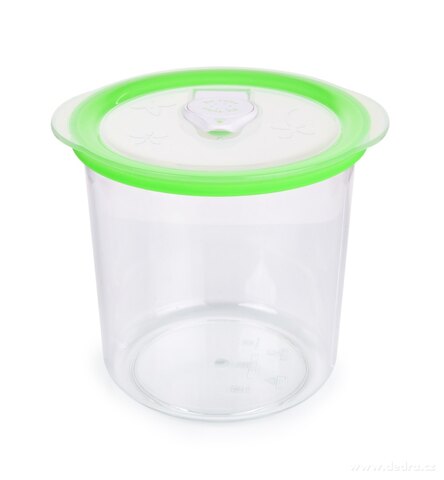 TRITANOWY POJEMNIK na żywność z zaworem do odsysania powietrza za pomocą automatycznej pompki, wieczko z silikonową uszczelką. Grubościenna konstrukcja, materiał TRITAN (bez zawartości BPA). Okrągły, średnica 13 cm (szerokość z uszami 14 cm).