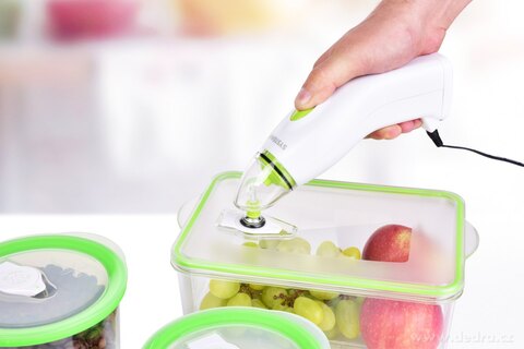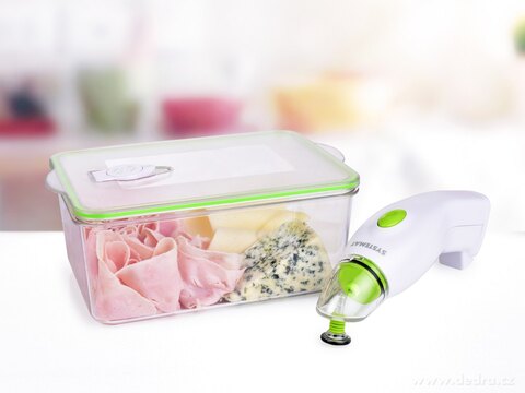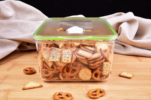 TRITANOWY POJEMNIK na żywność z zaworem do odsysania powietrza za pomocą automatycznej pompki, wieczko z silikonową uszczelką. Grubościenna konstrukcja, materiał TRITAN (bez zawartości BPA). Prostokątny 2600 ml, 22,5 x 16,5 x 10 cm.
