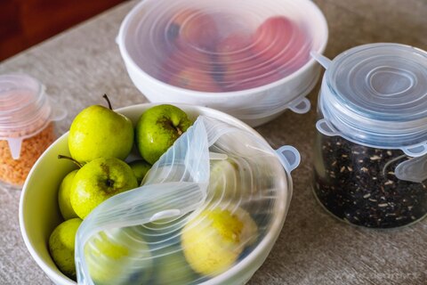 Zamiast jednorazowych nieekologicznych folií, wykorzystasz zmywalne siliwieczka wielokrotnego użytku, które dopasują się do prawie każdego pojemnika i chronią jedzenie przed zsychaniem!
