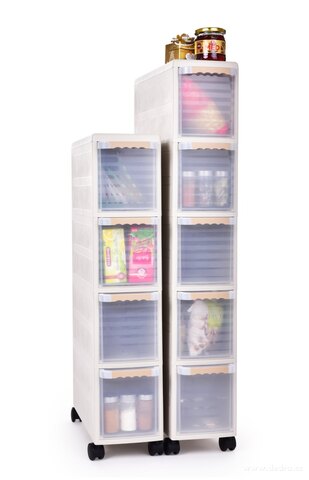 Mobilny regał z transparentnymi szufladkami, 5 szuflad. Wykonano z solidnego plastiku.