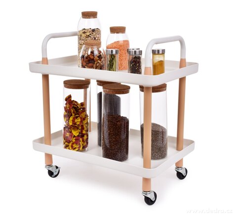 Mobilny piętrowy regał MULTI-TROLLEY z 4 kółkami od spodu (można je unieruchomić), solidne metalowe uchwyty dla łatwej manipulacji, prostokątny, 2-piętrowy. Materiał: metal i plastik. Wymiary: 35,5 x 53 cm x 56 cm.