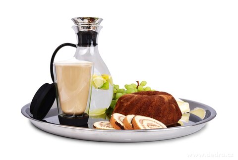 Okrągła taca do serwowania ze stali nierdzewnej.
