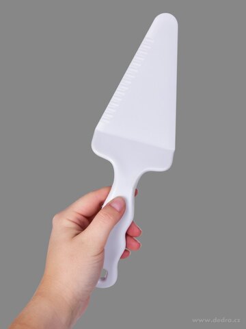 Praktyczna łopatka do krojenia tortów i deserów. Z boku z ząbkami dla łatwego krojenia.