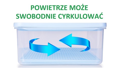 Dzięki ociekowej/ przewiewnej kratce powietrze może swobodnie cyrkulować a jedzenie jest suche i nadal świeże...