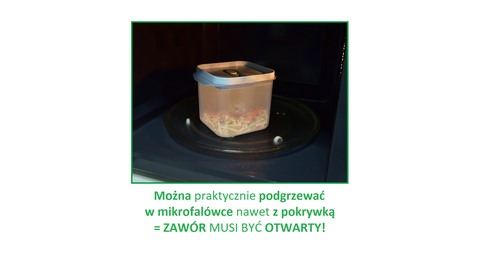 dzięki zaworowi w wieczku i silikonowej uszczelce, zawartość będzie szczelnie zamknięta a jedzenie zostanie świeże i smaczne