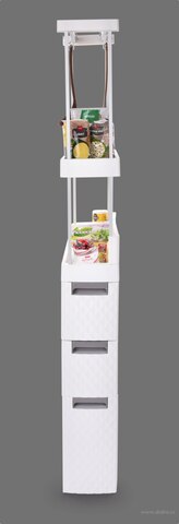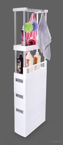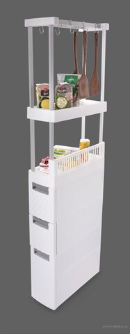 Wykorzystasz w wąskich miejscach i poszerzysz tak przestrzeń do przechowywania np. obok pralki, mebli kuchennych, WC.