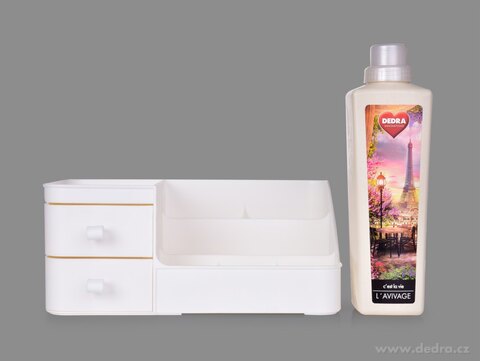 Organizer kosmetyczny BEAUTY z odpornego plastiku, 7 różnych przegródek i 2 wyjmowane szufladki.