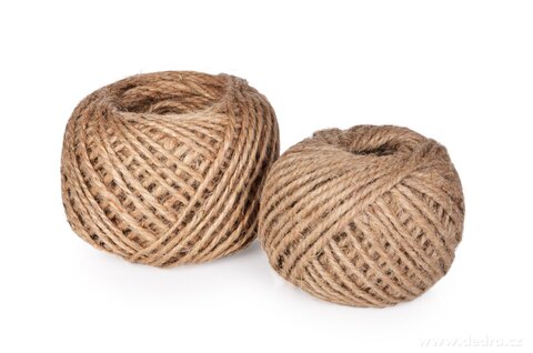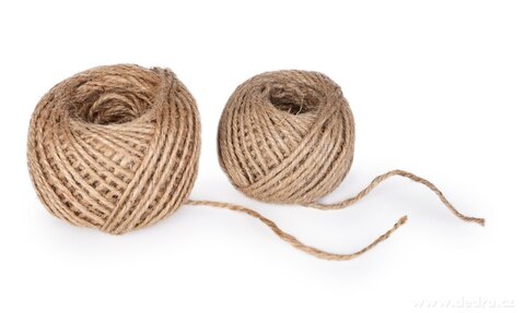 Naturalny sznurek konopny, pleciony z dwóch cienkich sznureczków, zwój ok. 60 m, średnica sznurka ok. 1,5 mm.