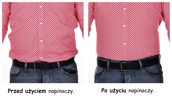 2 szt. napinacz do koszul z klipsami zaciskowymi. Materiał guma, plastik i ekoskóra. Regulowany obwód ok. 34 - maks. 44 cm (w stanie nienapiętym).