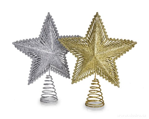 Szpic na choinkę, złoty, w kształcie gwiazdy z brokatowym wykończeniem,