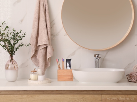 Stojak z naturalnego bambusa jest idealny na szczoteczki i pastę dla całej rodziny. Pięknie będzie się wyróżniać w Twojej łazience i wniesie do niej odrobinę natury.