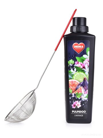 Nierdzewny cedzak/ chochla do smażenia z silikonowym wykończeniem na uchwycie. Materiał stal nierdzewna i silikon. Długość 31,5 cm, średnica 9,5 cm.
