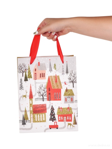 Torebka na prezent, motyw ozdobiony złotym brokatem | wioska, rozm. M