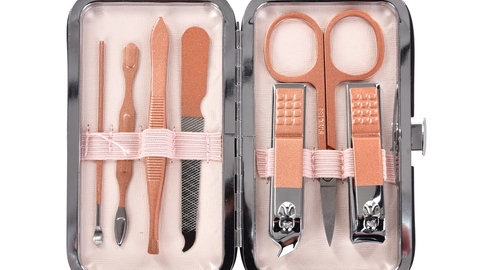 Zestaw do manicure ze stali nierdzewnej, zapakowany w praktycznym etui.