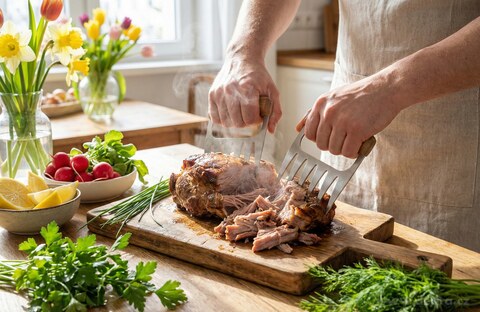 Super do mięsa szarpanego. Znakomity do siekania oraz dzielenia gotowanej wieprzowiny, wołowiny lub drobiu.