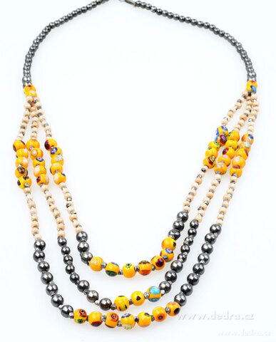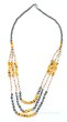 Nowoczesny naszyjnik, połączenie metalowych i żółtych koralików. Długość 80 cm
