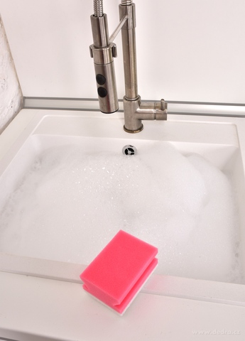 Dobrze pieni i nie powoduje zarysowań, strona chropowata dla łatwego usuwania zaschniętego brudu.