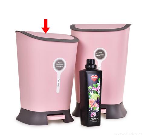 Kosz na śmieci otwierany pedałem, z pokrywką. Wyjmowany pojemnik wewnętrzny.