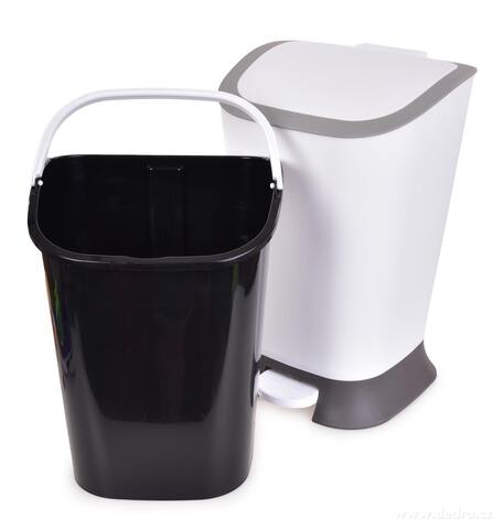 Kosz na śmieci otwierany pedałem, z pokrywką. Wyjmowany pojemnik wewnętrzny.