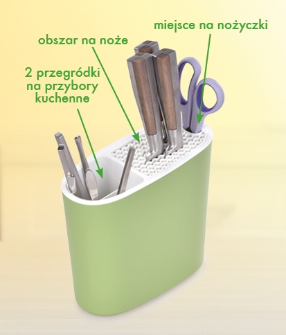 2w1 pochyły stojak i ociekacz na noże oraz przybory kuchenne.