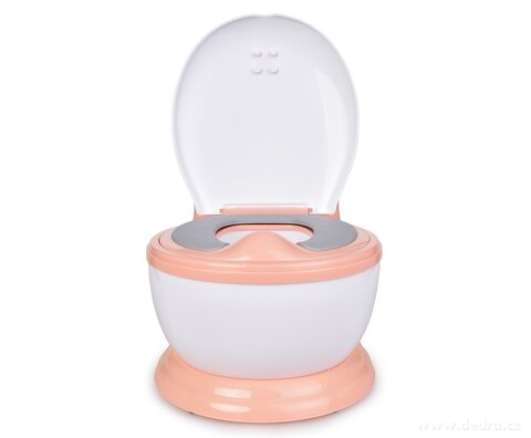 Nocnik dziecięcy przypominający sedes, z zamykaną klapą oraz wyjmowanym pojemnikiem dla łatwego opróżniania. W komplecie zagięta szczotka do czyszczenia. Wykonano z solidnego plastiku. Maks. pojemność ok. 2000 ml.