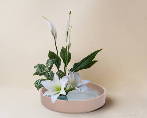 Ceramiczna misa do kwiatowych aranżacji IKEBANA. Średnica 20 cm, wysokość 5,5 cm, pojemność ok. 1200 ml.