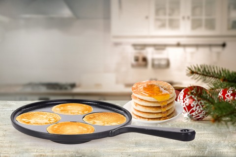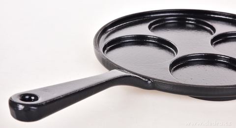 PLACKOWNIK Żeliwna patelnia do naleśników i jajek sadzonych, z czterema otworami.