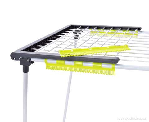 Masywna składana suszarka ROBUSTON oferuje 22 m powierzchni suszenia oraz 116 klipsów na drobne pranie. Stabilna metalowo-plastikowa konstrukcja utrzyma nawet 2 pralki prania. Podwyższone boki, uchwyty na wieszaki i składane nogi z nakładkami gwarantują wygodne suszenie zarówno wewnątrz, jak i na zewnątrz.