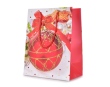 Torebka na prezent, motyw ozdobiony złotym brokatem | biało-czerwona z bombkami, rozm. M