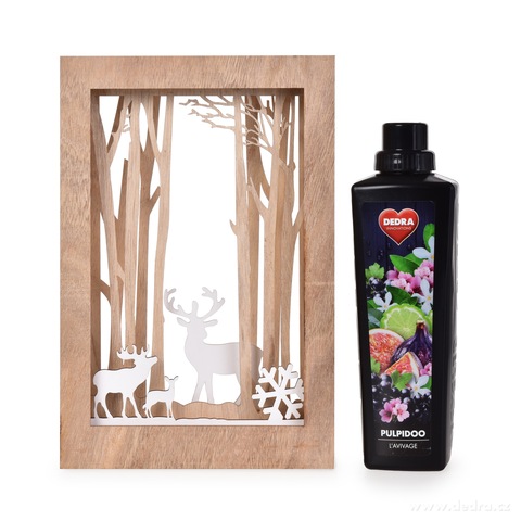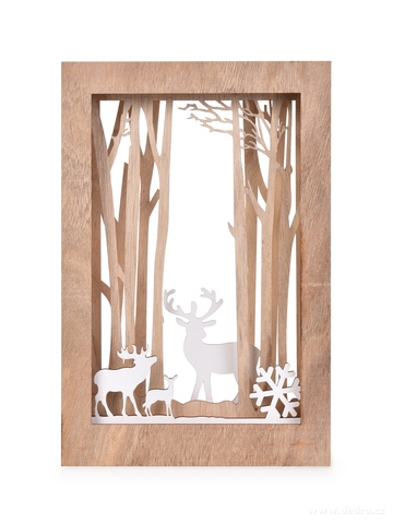 Świecąca drewniana dekoracja z motywem jeleni, wewnątrz oświetlenie LED.