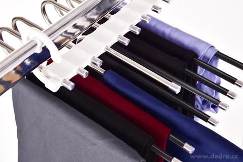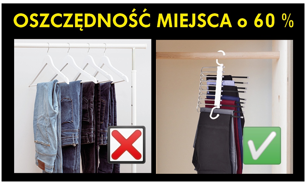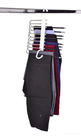Umożliwia powieszenie kilku sztuk spodni na jednym wieszaku = oszczędność miejsca.