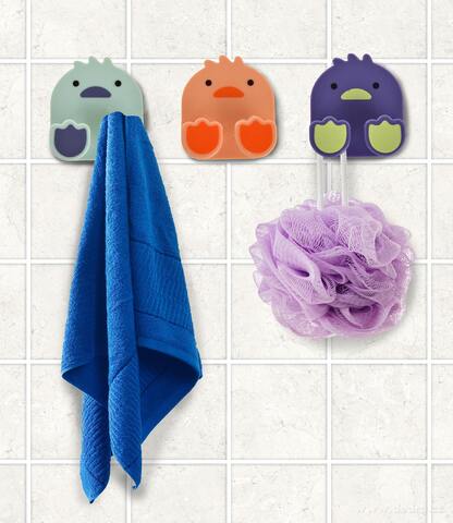 Zestaw 3× wieszaków KACZĄTKO na ręczniki, ściereczki i inne akcesoria bez pętelki. Łatwe przyklejenie do ściany bez wiercenia dzięki samoprzylepnej podkładce. Stylowy i zabawny design, solidny plastik. Praktyczne do łazienki, kuchni i pokoju dziecięcego. Porządek i wygoda każdego dnia.