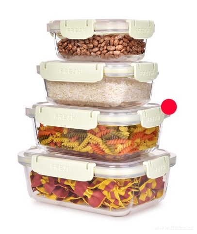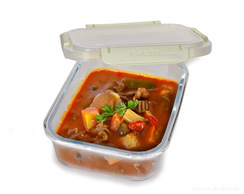 Szklany pojemnik na żywność FRESH GLASS jest wykonany z wysokiej jakości szkła oraz wytrzymałego plastiku, pokrywka została wyposażona w cztery solidne klipsy i silikonową uszczelkę dla hermetycznego zamknięcia.