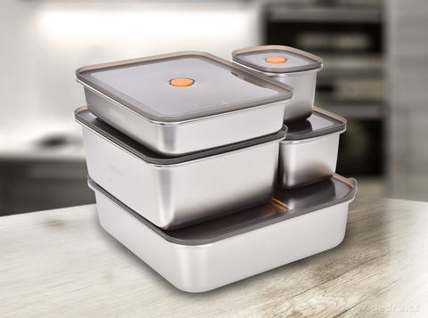 4. Estetyczny wygląd: Stal nierdzewna nadaje pudełku nowoczesny i elegancki wygląd, co sprawia, że można je wykorzystywać nie tylko do przechowywania, ale także do serwowania potraw na stole.