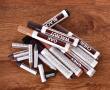 17-elementowy komplet korektorów do mebli. Zestaw zawiera 8 markerów, 8 wosków w 8 kolorach (czarny, szary, biały, mahoń, klon, dąb, wiśnia, orzech) i temperówkę.