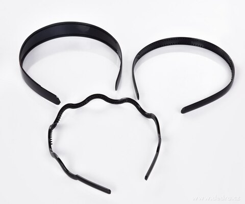 3 szt. komplet opasek do włosów, od wewnętrznej strony są delikatne grzebyki, dzięki którym pięknie utrzymują kształt włosów. Wykonano z plastiku. Wymiary: szeroka opaska szer. 2,4 cm, wąska opaska szer. 1,2 cm, falowana opaska szer. 0,6 cm.