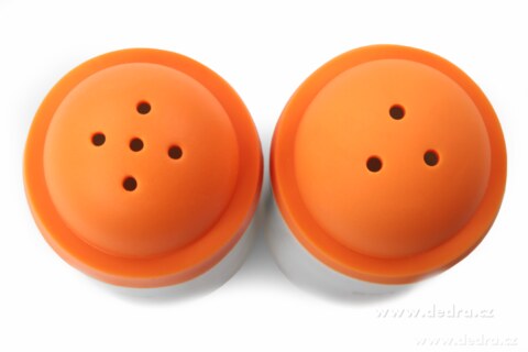 Zestaw dwóch porcelanowych pojemników na przyprawy z pokrywką silikonową. Można myć w zmywarce, każdy ma 100 ml objętości, wysokość około 12 cm. Wielką zaletą jest łatwe mycie poszczególnych elementów ręcznie lub w zmywarce.