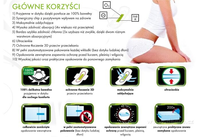 Aktywowany temperaturą i wilgotnością ciała chip emituje aniony, które wytwarzają dużą ilość aktywnego tlenu. Ten tlen nie tylko zapobiega rozwojowi szkodliwych bakterii oraz wirusów, ale także chroni pożyteczne bakterie. Przyczynia się tym do utrzymania zdolności samooczyszczania i odporności mikroflory pochwy.