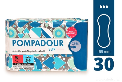 POMPADOUR® SLIP 30 szt. damskie wkładki higieniczne + TESTER GRATIS do określenia stanu mikroflory pochwy. Każda sztuka oddzielnie pakowana dla maksymalnej higieny.