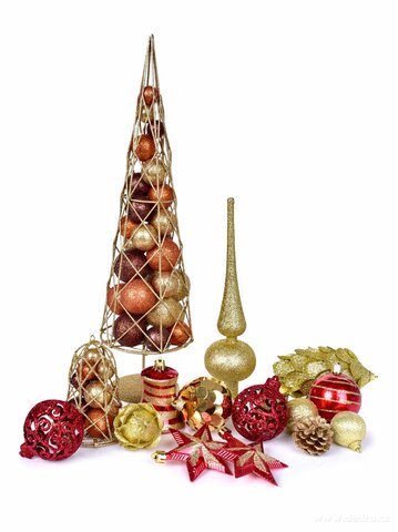 Dzwonek składa się z metalowej ramy wypełnionej złotymi koralikami o różnych wielkościach. Całość w ciepłych odcieniach złota, wysokość 10,5 cm.