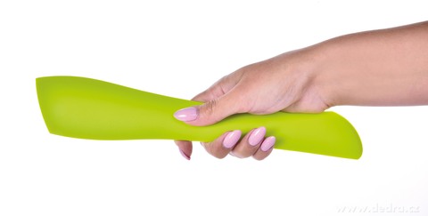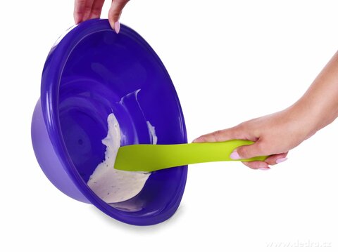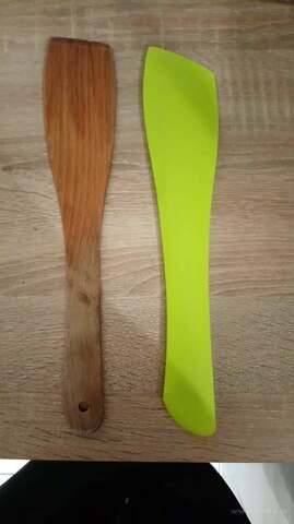 Jej rdzeń jest solidny, ale krawędzie są z miękkiego silikonu. Więc idealnie przylega do ścian wszystkich naczyń i garnków. Idealna również na powierzchnie nieprzywierające (ceramika, teflon). Wąski koniec wykorzystasz do słoików od majonezu lub dżemu.