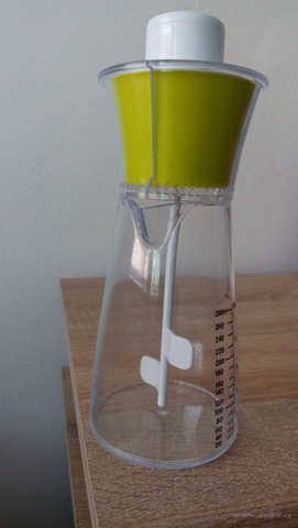 Pojemnik z „mieszadłem” do sporządzania i serwowania własnych dressingów i sosów sałatkowych.