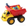 Duża ciężarówka, 7 częściowy zestaw w ciężarówce do zabawy w piaskownicy. Przyczepa na zawiasach, kołowrotki, kierowca w kabinie. • max. wymiary samochodu: 36 x 22,5 x 23 cm • max. wym. grabi i łopatki: 19.5 x 8 cm • Max. wymiary foremek: 12 x 10 x 3,5 • max. wymiary polewaczki: 12.5 x 8.5 x 11 cm, 300 ml • max. wymiary statku: 15 x 8 x 14 cm