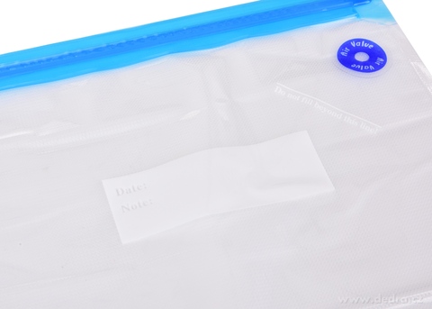 Specjalne próżniowe torebki na suwak z zaworem. Każdy woreczek ma przygotowane pole