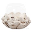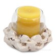 Szklany świecznik na dużym ceramicznym cokole w kształcie kwiatu lotosu. Na tealight i klasyczne świece. Max wymiary: średnica 15 cm, wysokość 11 cm