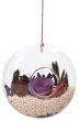 Wisząca kula z dmuchanego szkła bezbarwnego. Idealna do tworzenia kompozycji kwiatowych, świątecznych (Wielkanoc, boże narodzenie). Możesz wypełnić kulę kwiatami, pisakiem, muszelkami, (ogranicza cię jedynie wyobraźnia). Kula może również pełnić funkcję karmnika dla ptaków. Dzięki specjalnemu haczykowi możesz zawiesić ją w dowolnym miejscu np. na tarasie, na balkonie, na pergoli, w domu, itd.