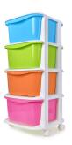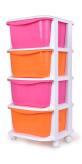 QUATRO czteropiętrowy regał z utwardzonego plastiku. Posiada kółka dla prostej manipulacji.