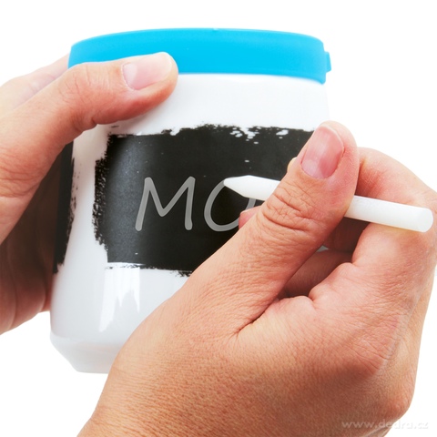 z "tablicowego" materiału, po których można pisać specjalnym ołówkiem. Jest on w zestawie.
