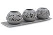 BALI CERAMICS Świecznik tworzy ciekawe efekty świetlne dzięki ciekawej mozaice. Kolor naturalny szary. 3 ceramiczne świeczniki na ceramicznej podstawce. Max. wymiary: 35,5 x 10,5 x 9 cm.